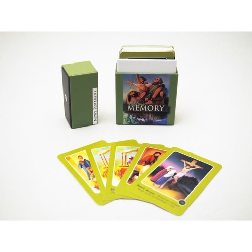 Pudełko zawierające zestaw kart memory z pięknymi ilustracjami i krótkimi opisami historii biblijnych.