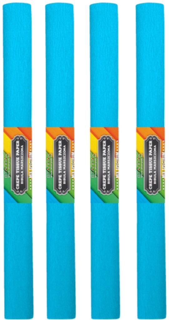 Bibuła marszczona w kolorze jasnoniebieskim - niezbędna każdemu uczniowi na zajęciach plastycznych.