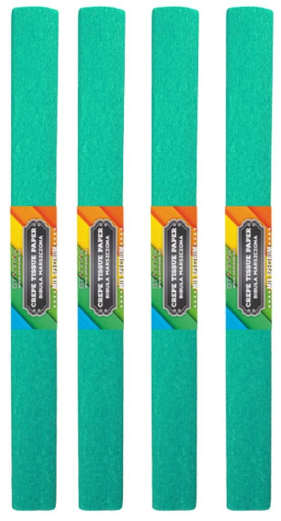 Bibuła marszczona, w kolorze turkusowym - niezbędna każdemu uczniowi na zajęciach plastycznych.