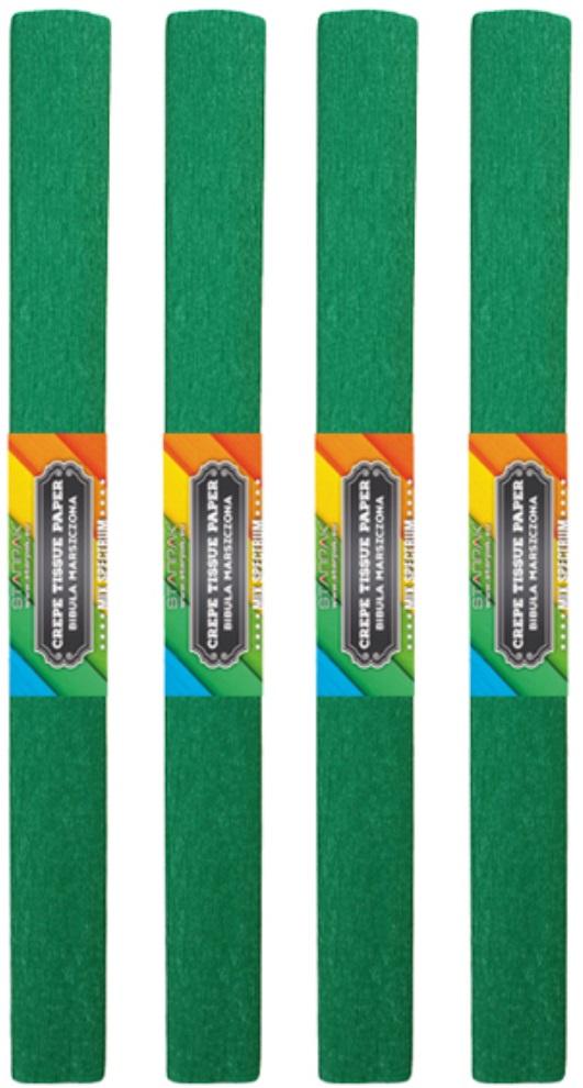 Bibuła marszczona, w kolorze cimnozielonym - niezbędna każdemu uczniowi na zajęciach plastycznych.
