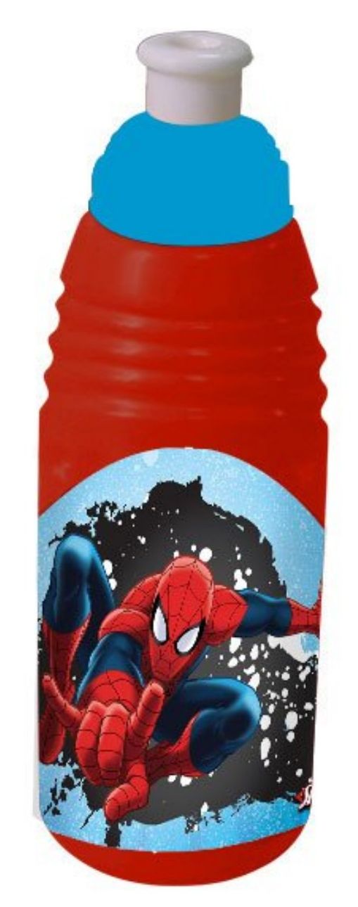 Bidon plastikowy, okrągły. Nakrętka innego koloru niż cały bidon, zakończona sportowym "dziubkiem". Na butelce nadruk wielokolorowy. Pojemność 470ml Szerokość: 6,6 cm Długość: 19,6 cm