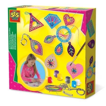 Czy wiesz, że możesz haftować w drewnianych elementach? Pomaluj drewniane elementy i wyhaftuj kolorowymi nićmi przez otwory. Zestaw zawiera elementy do breloczków, broszek i naszyjnika.