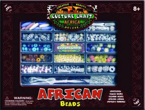 Dopracowane plastycznie szklane i plastikowe koraliki, akcesoria do tworzenia ozdób to godziny twórczej zabawy. Dzięki bogactwu form i kolorów dziecko może poznać biżuterię jaką noszą mieszkańcy Afryki. Może nawlekać koraliki według własnego uznania a po skończonej pracy cieszyć się własną, niepowtarzalną biżuterią.