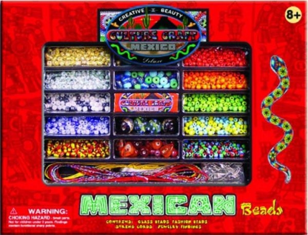 Dopracowane plastycznie szklane i plastikowe koraliki, akcesoria do tworzenia ozdób to godziny twórczej zabawy. Dzięki bogactwu form i kolorów dziecko może poznać biżuterię jaką noszą mieszkańcy Meksyku. Może nawlekać koraliki według własnego uznania a po skończonej pracy cieszyć się własną, niepowtarzalną biżuterią.