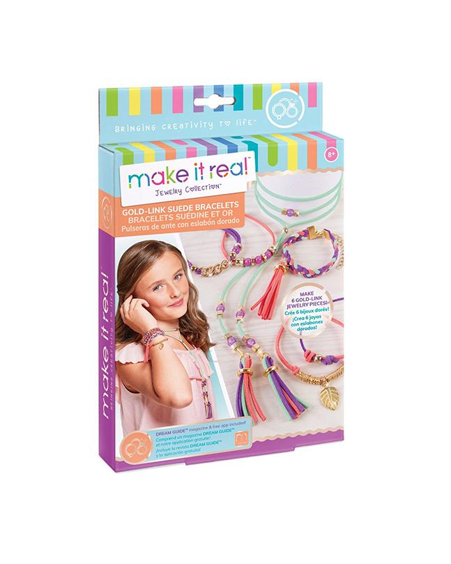 Poznaj proste techniki, dzięki którym zaprojektujesz i stworzysz pięć modnych bransoletek. Wykorzystaj akcesoria dołączone do zestawu, aby nadać im unikalnego charakteru. Zestaw zawiera: 3 kolory sznurka ze sztucznego zamszu (4,5 m), ponad 60 akcesoriów w kolorze złotym, 40 stylowych koralików, łańcuszki, instrukcja, magazyn mody.