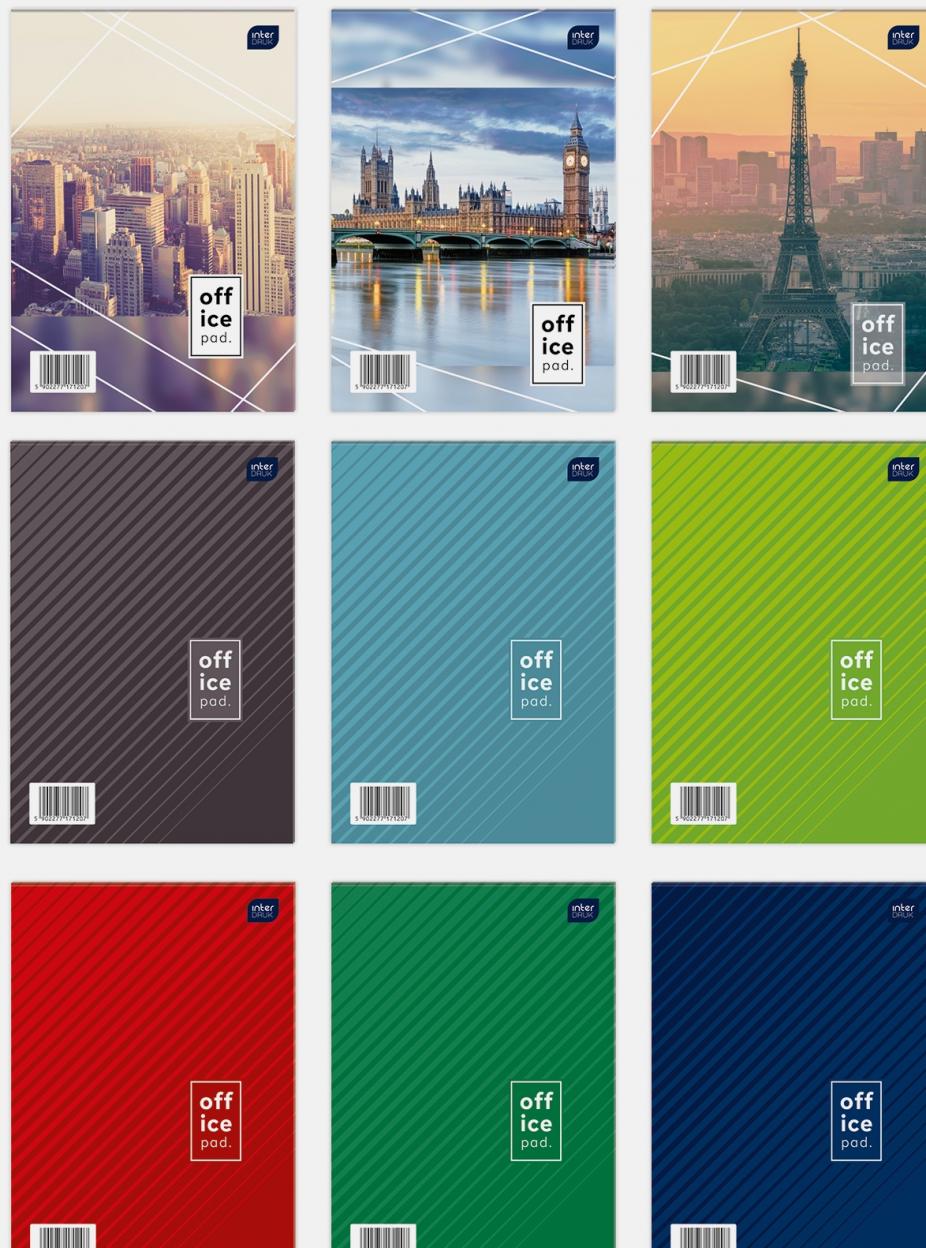 Blok biurowy A4 linia, 100 kartek, mix wzorów. 10 sztuk w opakowaniu zbiorczym.