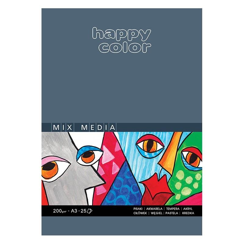 Opis produktuZasady bezpieczeństwaBlok Mix Media marki Happy Color. Wysokiej jakości 25 arkuszy białego papieru w formacie A3.