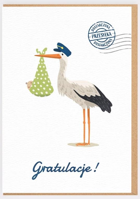 Kartka GRATULACJE poleca się jako dodatek do prezentu z okazji narodzin dziecka. Kartka w zestawie z elegancką kopertą jest pusta w środku i została wydrukowana na papierze ekologicznym. Jej wnętrze czeka na wypełnienie treścią płynącą prosto z Twojego serca!