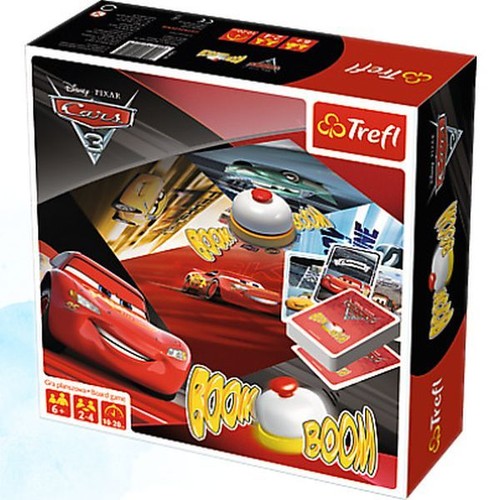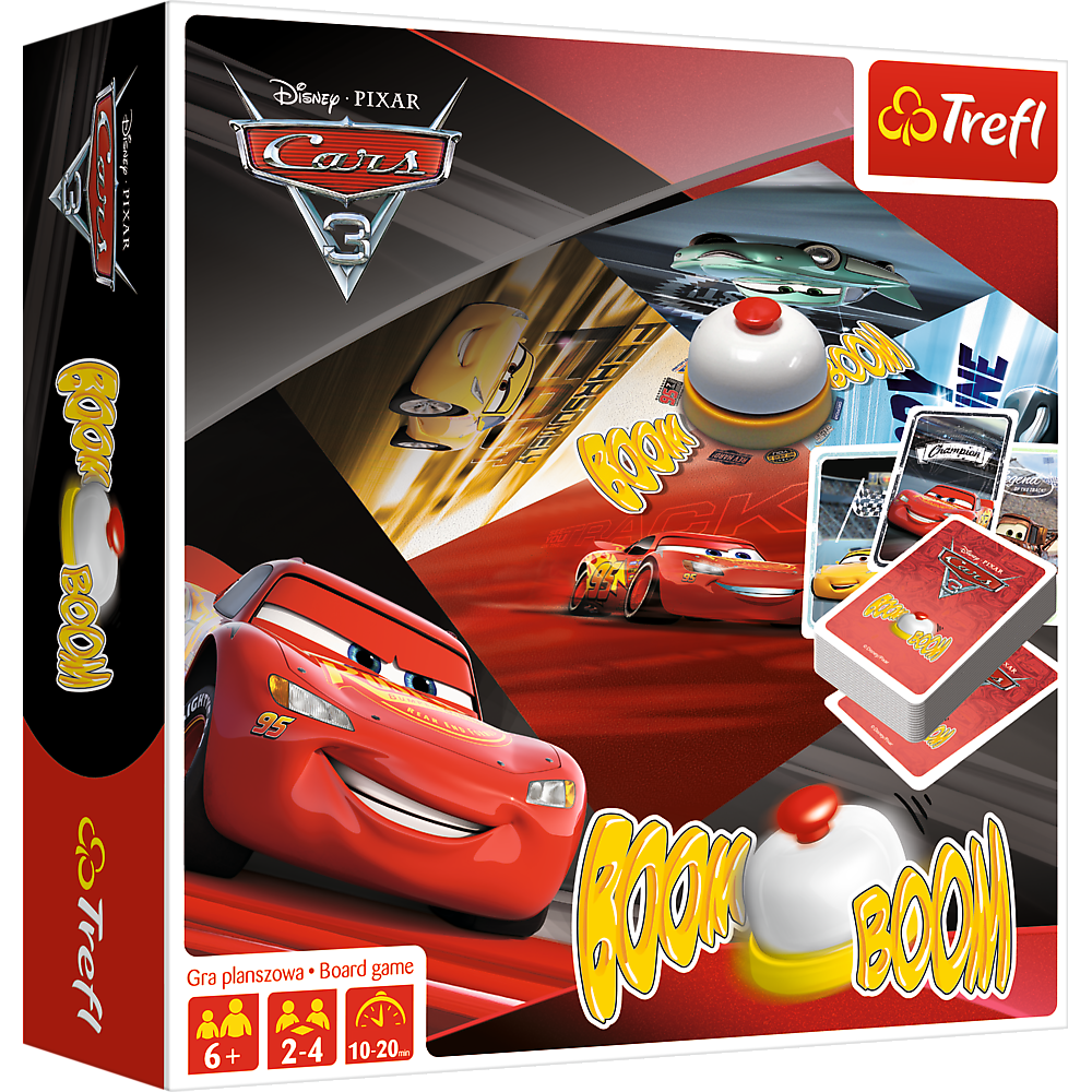 Bohaterowie nowego filmu Auta 3 zapraszają do gry w Boom Boom! Zbierz komplet kart i zadzwoń dzwonkiem! Żeby zostać zwycięzcą, musisz ułożyć wszystkie swoje zestawy kart z bohaterami filmu. Przeciwnicy nie dadzą za wygraną. Boom Boom – zakręcona gra z dzwonkiem, w której wszyscy grają naraz! Kto pierwszy zakończy grę?