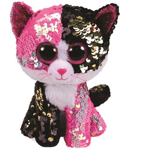 Pluszak ma błyszczące, brokatowe oczy oraz jest pokryty CEKINAMI