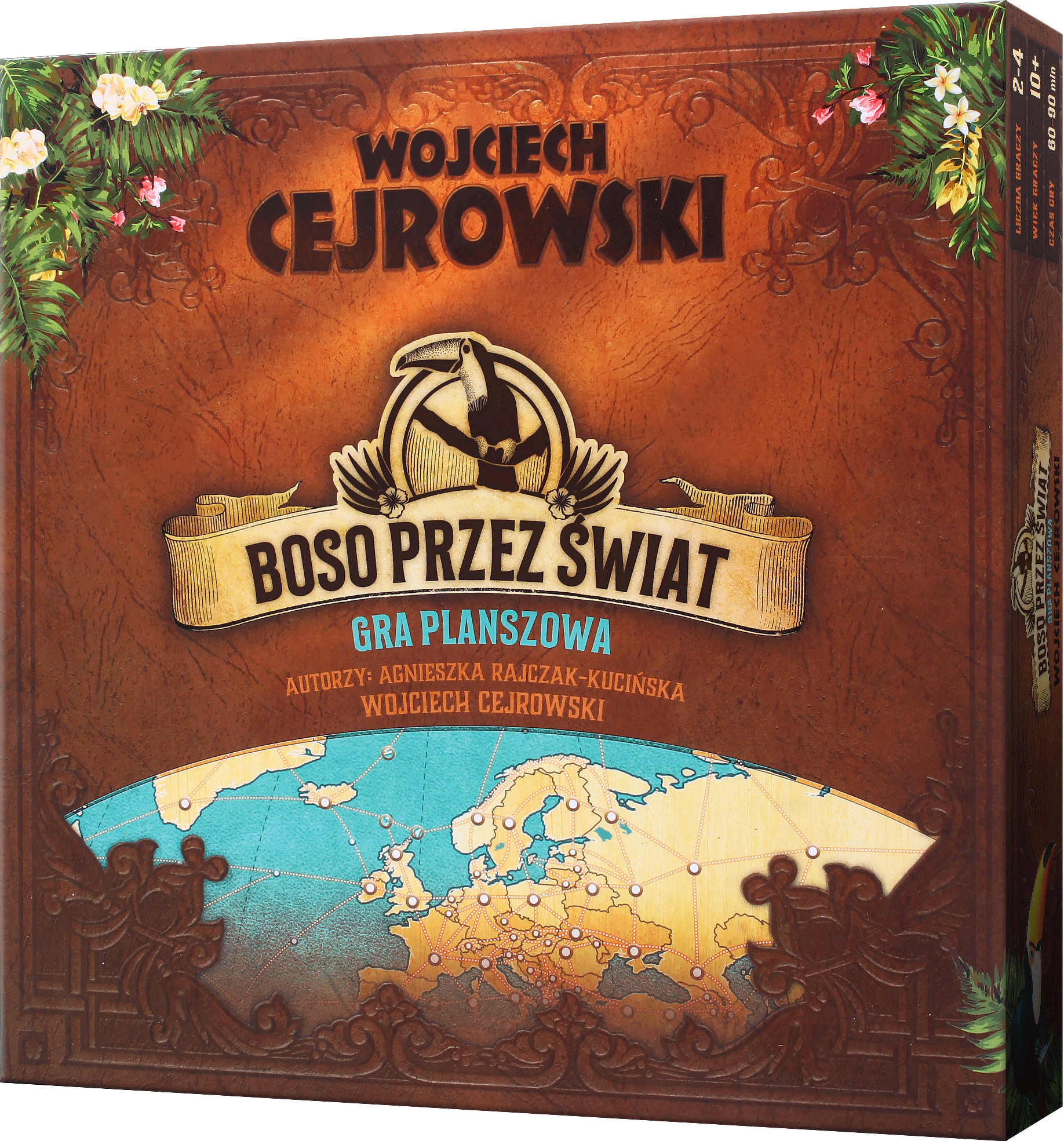 Baw się też kartami skojarzeń, odkrywając różnorodność i bogactwo świata! Niezależnie od tego, czy ktoś jest zapalonym turystą, czy zawodowym podróżnikiem, czy też woli wygodny fotel we własnym domu, Boso przez świat zabierze Państwa w niezapomnianą podróż! Na czym polega gra? W grze chodzi o to, by jak najszybciej przebyć wylosowaną trasę. Kto pierwszy odwiedzi wszystkie miejsca wymienione na karcie trasy - wygrywa. Chyba że wybierze się drugi wariant zwycięstwa - wtedy gra toczy się do momentu, gdy wszyscy gracze zakończą swoje trasy i wówczas wygrywa najbogatszy. Gra toczy się na planszy będącej mapą świata. Gracze przemieszczają się po lądach i oceanach, wchodząc na pola, które są państwami (lub częściami państw większych), wyspami, archipelagami oraz punktami na oceanach (plus Antarktyda). Nie ma pionków, nie ma kostek - Gracze znaczą swoją trasę mazakiem suchościeralnym. Trasę ustalają sami, ale mają za zadanie odwiedzić miejsca wymienione na karcie trasy, którą losują na początku (w dowolnej kolejności). Gra zawiera 371 kart skojarzeń, które służą między innymi do zarabiania goldenów, przemieszczania się po planszy gratis, ale też do zabawy zawartymi na nich informacjami. Nie jest to żadna forma quizu; aby grać w tę grę, nie trzeba mieć szerokiej wiedzy geograficznej. Raczej odwrotnie - porządna wiedza geograficzna dyskretnie i przy okazji wchodzi do głowy za sprawą rozgrywek w Boso przez świat! x