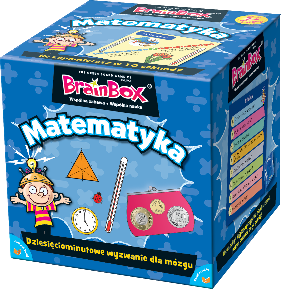 Szukasz sprawdzonego narzędzia do powtarzania matematyki? Chcesz pomóc dziecku w nauce tabliczki mnożenia, objętości, ułamków czy figur geometrycznych? BrainBox - Matematyka przychodzi z pomocą! To połączenie pasjonującej rozgrywki z treningiem zapamiętywania i utrwalaniem najważniejszych pojęć. Czym jest BrainBox? To seria wyjątkowych gier edukacyjnych, które będą wspierały rozwój Twoich dzieci lub podopiecznych na każdym etapie nauki. Wykorzystując dynamiczną i angażującą zabawę, gry z linii BrainBox pozwalają rozwijać wiedzę, a także wspierają trening pamięci i spostrzegawczości, czyli umiejętności kluczowych dla rozwoju. Każde pudełko to zestaw kart, które po jednej stronie mają obrazek (należy przyjrzeć mu się przez określony czas), a z drugiej zestaw pytań, sprawdzających nie tylko naszą pamięć, ale też wiedzę z zakresu danego przedmiotu. Na czym to polega? Weź kartę z pudełka i odwróć klepsydrę. Przyglądaj się obrazkowi na karcie tak długo, jak przesypuje się piasek. Możesz przekręcić klepsydrę jeszcze raz, jeśli potrzebujesz więcej czasu. Przekaż kartę innemu graczowi i rzuć kością. Liczba na kości wskazuje, na które pytanie musisz odpowiedzieć (na przykład gdy wyrzucisz 2, odpowiadasz na pytanie numer 2). Gracz, któremu została przekazana karta, czyta na głos pytanie, na które musisz udzielić odpowiedzi. Następnie sprawdza Twoją odpowiedź, patrząc na obrazek na drugiej stronie karty. Jeśli odpowiedź jest prawidłowa, zatrzymaj kartę. Jeśli jest błędna, odłóż kartę do pudełka. Teraz kolej na następnego gracza. Gracz, który zgromadzi najwięcej kart po upływie 10 minut, wygrywa! x