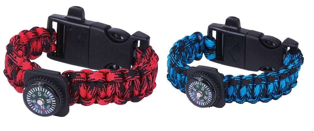 Bransoletka Survivalowa z paracordu z kompasem, gwizdkiem i krzesiwem