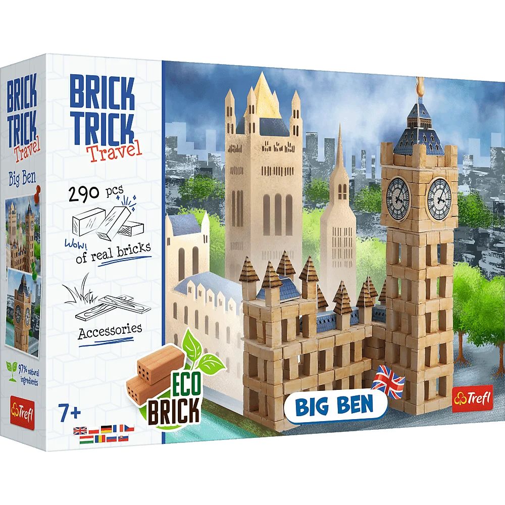Wybuduj najbardziej rozpoznawalny symbol Wielkiej Brytanii - Big Ben, wykorzystując prawdziwe cegły i elementy dekoracyjne. Dzięki produktom z serii Brick Trick Travel poznasz niektóre z popularnych i lubianych zabytków, a co najważniejsze - zyskasz możliwość zbudowania ich od podstaw. Teraz najsłynniejsze historyczne budynki z każdego zakątka świata, możesz wystawić na swojej półce! Skorzystaj z dołączonych planów budowy lub użyj wyobraźni do stworzenia niepowtarzalnej konstrukcji.