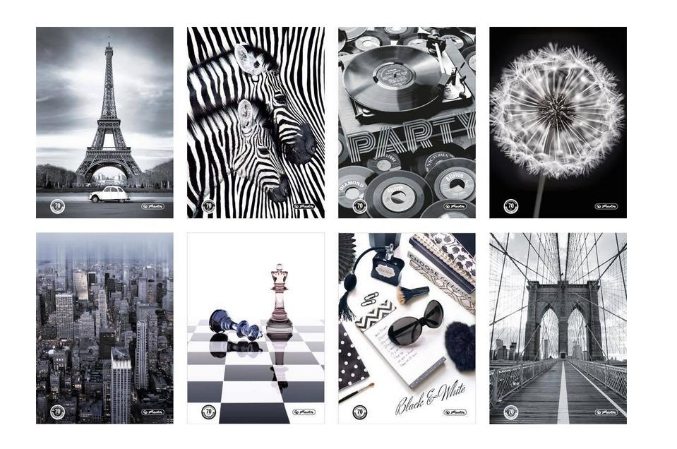 Zeszyt A4/96K. kratka Black&White. 5 sztuk w opakowaniu zbiorczym. Wzory wysyłane losowo.