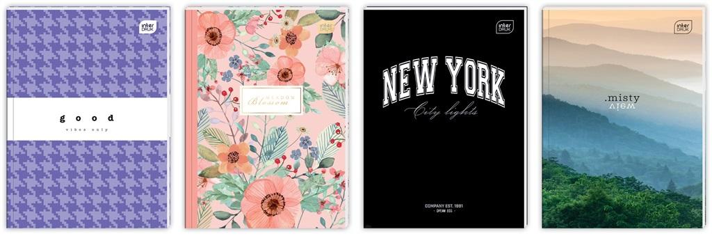 Brulion B5 w kratkę, 160 kartek,oprawa półtwarda, mix wzorów. 5 sztuk w opakowaniu zbiorczym. Producent Interdruk.