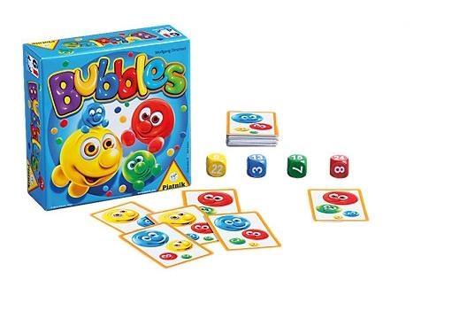 Kolorowa gra z bąbelkami dla 2 - 4 graczy od 6 lat. Żółte, czerwone, niebieskie i zielone: na kartach przedstawiono zabawne kolorowe bąbelki o różnych wielkościach. Nietrudno stracić orientację. Jak szybko uda Ci się znaleźć kartę z odpowiednią kombinacją liczb wyrzuconych na kostkach? Przy odrobinie koncentracji i zręczności świetnie poradzisz sobie z tym wyzwaniem!