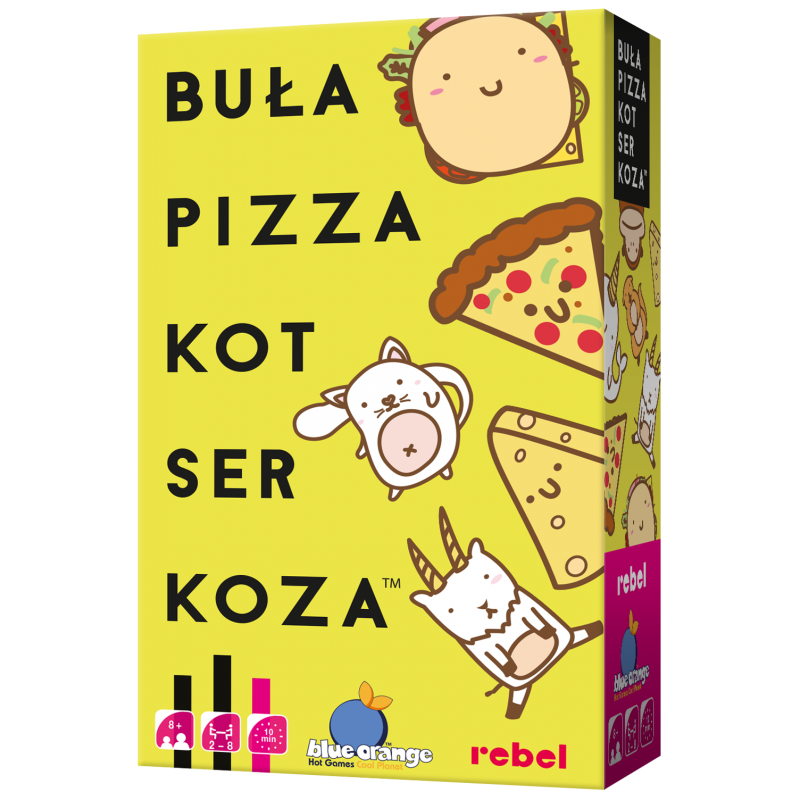 Buła, Pizza, Kot, Ser, Koza - gra równie szalona, jak jej nazwa! To wyjątkowe połączenie Jungle Speeda i Uga Buga! z pewnością spodoba się wszystkim fanom głośnych, dynamicznych zabaw, które bezlitośnie karzą tych, którym zdarzy się zagapić!
