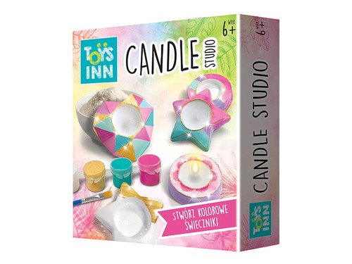 - proszek gipsowy, - foremki, - miarka, - farby w 5 kolorach, - paleta + pędzel, - drewniany patyczek, - klej, - instrukcja.