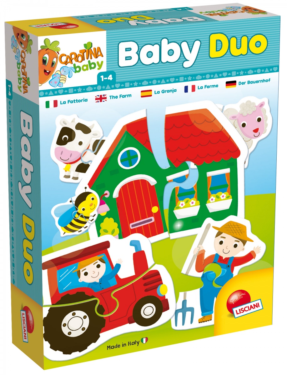 Stwórz własny scenariusz wesołej wsi! Baby Duo The Farm to oryginalny zestaw, dzięki któremu dzieci stworzą swój własny, zabawny scenariusz wesołej wsi przy pomocy dołączonych puzzli. Gra pobudza logikę oraz kreatywność i gwarantuje świetną zabawę!
