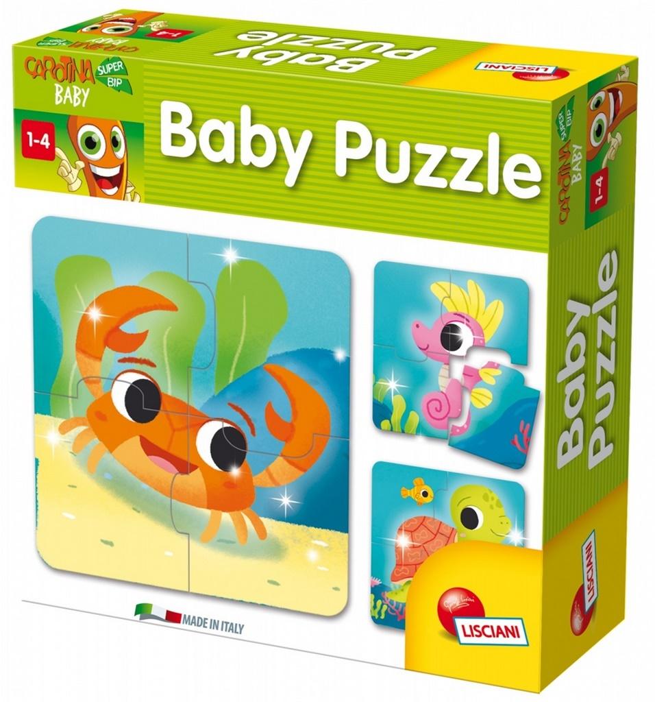 Carotina Baby Puzzle to 8 czteroelementowych puzzli ze wesołymi zwierzątkami. Linia Carotina Baby została stworzona specjalnie dla dzieci powyżej pierwszego roku życia, z wykorzystaniem dużych elementów z grubej tektury pokrytych kolorowymi obrazkami. Gra polega na dopasowaniu zwierzątek do ich mam.