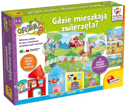 Gra prezentująca dzieciom zwierzęta oraz ich naturalne środowiska. Opakowanie zawiera cztery plansze-układanki: wieś, las, sawanna, morze, do których należy dopasować 24 karty ze zwierzętami. Kolejnym zadaniem dzieci jest zaprowadzenie zwierzątek do ich domków i mam. Gra umożliwia również zorganizowanie zabawnych loterii z kolorami i młodymi zwierzętkami.