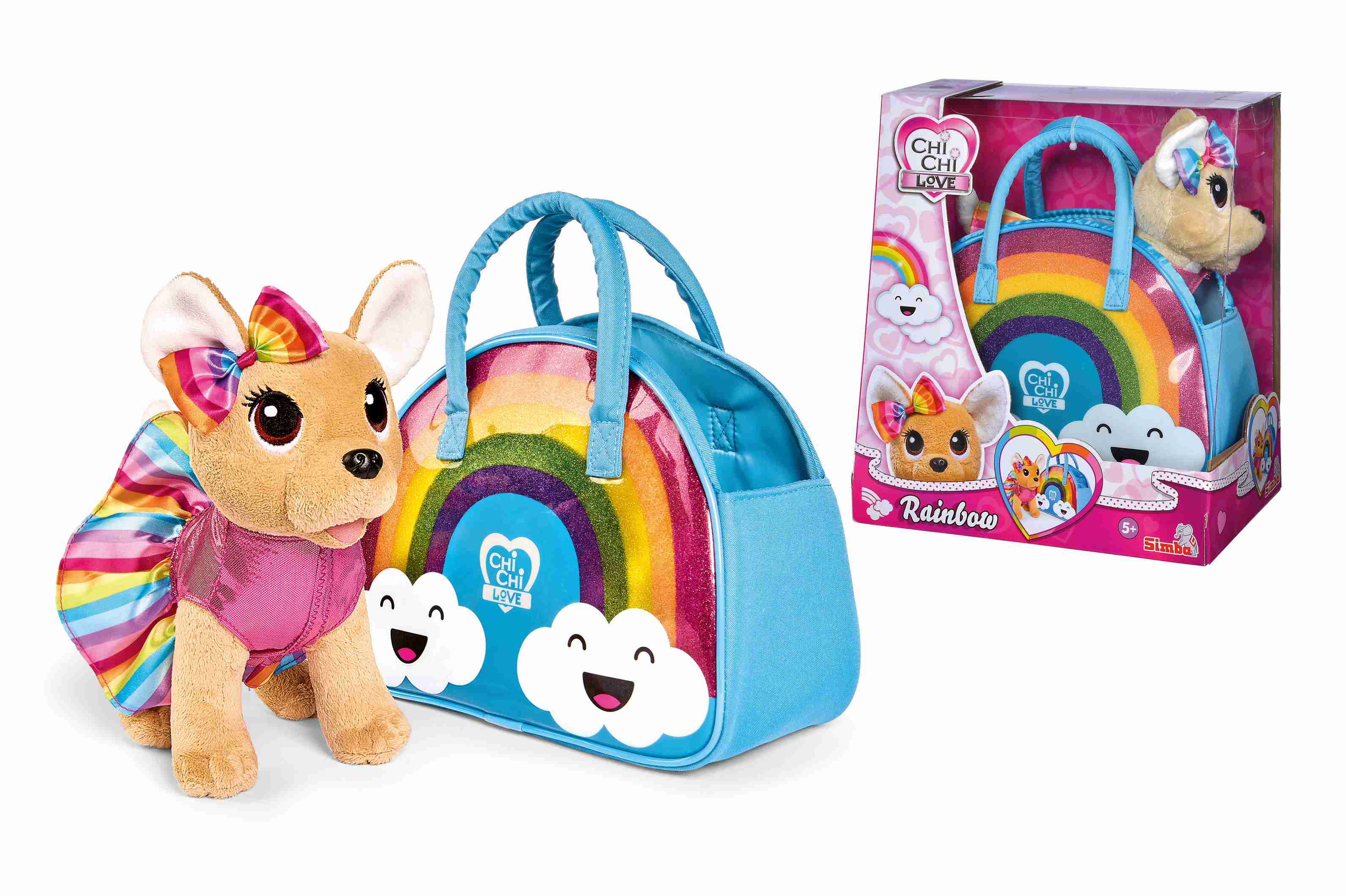 Chi Chi Love Tęczowa moda to uroczy piesek - przytulaczek z supermodnymi dodatkami. Wykonany został z delikatnego, bardzo miłego w dotyku pluszu. W zestawie z uroczym Chihuahua znajduje się specjalna torebka, w której piesek będzie fantastycznie czuł się podczas spacerów. Torebka jest lakierowana w kolorach tęczy. Na szczególną uwagę zasługuje jednak niezwykła kreacja Chihuahua - śliczna sukienka z połyskującą różową górą i kolorowym dołem oraz kokarda przy uchu, która idealnie pasuje do reszty stroju. Taki piesek to prawdziwy przyjaciel dziewczynki i nieodzowny towarzysz!