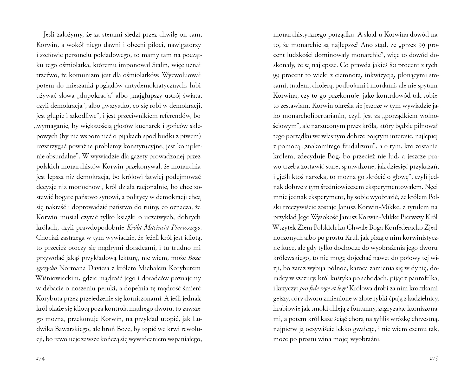 Opis produktuZasady bezpieczeństwaPoszedłem do korwinistów i konfederatów. Na początek? Dużo cukru. A potem rozgrywki polityczne, intrygi, kochanki, noce na barze, nazistowskie piosenki. Wbiłem się w szeregi chłopców, którzy maszerują równo, zauroczeni wizją wolności totalnej. A jeśli na końcu tego marszu czeka nas Polska totalna, w której wolność będzie tylko dla wybranych? Marcin Kącki Marcin Kącki, jeden z najlepszych i najbardziej doświadczonych polskich reporterów, nagradzany autor takich książek jak Białystok. Biała siła, czarna pamięć czy Oświęcim. Czarna zima, wraca z nowym reportażem o ludziach, którzy walczą o przejęcie władzy w Polsce. Poznajmy tych, którzy chcą nami rządzić. x