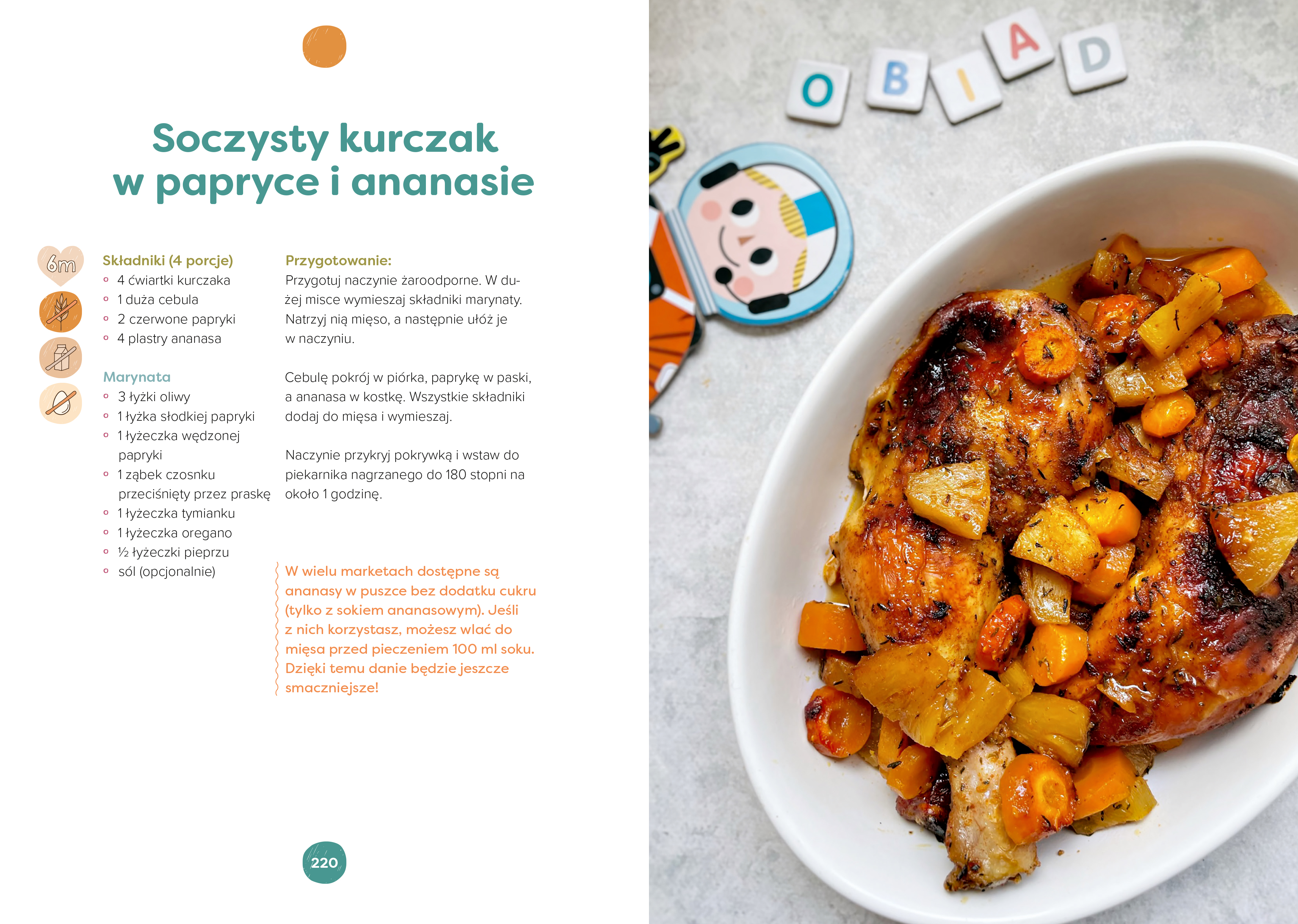 Opis produktuZasady bezpieczeństwaWSZYSTKO, CO MUSISZ WIEDZIEĆ, NA TEMAT ROZSZERZANIA DIETY I ŻYWIENIA DZIECKA W PIERWSZYCH LATACH ŻYCIA Rozszerzanie diety dziecka jest naturalnym etapem jego rozwoju. Jest też etapem stresującym i pełnym wątpliwości. Kiedy zacząć? Karmić łyżeczką czy wybrać BLW? I co, jeśli dziecko nie chce jeść? Michalina Klukowska przeprowadzi Cię przez rozszerzanie diety bezstresowo i bezboleśnie. A kiedy już uczcisz sukces pierwszym brokułem, sięgnij po drugą część książki. Dowiesz się, jak karmić starsze dziecko, jak ukształtować dobre nawyki żywieniowe swojego dziecka i jak pomóc mu nawiązać dobre relacje z jedzeniem. Poza tym w książce znajdziesz: listę produktów do rozszerzania diety praktyczne porady i wskazówki jadłospis na pierwsze dwa miesiące rozszerzania diety karty pracy oraz ponad 70 przepisów na dania dla całej rodziny! Michalina Klukowska - absolwentka dietetyki pediatrycznej, dyplomowana specjalistka ds. żywienia dzieci, studentka dietetyki. Od kilku lat prowadzi blog i profil na Instagramie U Wojtusia na talerzu, gdzie zajmuje się edukacją w zakresie żywienia dzieci - tych najmniejszych i tych troszkę większych. Mama dwójki dzieci, która wie, o czym mówi! Powyższy opis pochodzi od wydawcy. x