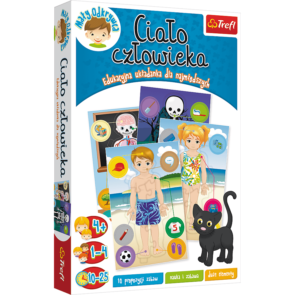 Ciało człowieka Ciało człowieka to zabawa w skojarzenia związane z organizmem i jego fizjologią. Gra odpowiada na zainteresowanie najmłodszych dzieci działaniem własnego ciała. W formie wesołej zabawy dzieci poznają wewnętrzną budowę człowieka, pobudzają wyobraźnię oraz poszerzają swój zasób słów. Gra pomaga kształtować i rozwijać zainteresowania Małych Odkrywców.