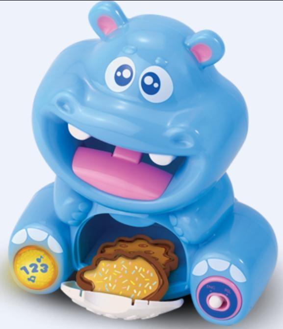Dwujęzyczny Hipcio (polski/angielski) liczy kolorowe ciasteczka, łakomie się nimi zajadając. Kiedy Dziecko naciśnie na stópkę rozpocznie zabawę w liczenie oraz usłyszy zabawne dźwięki i melodie. Nakarm Hipcia i policz ile jest w stanie zjeść ciasteczek. Po wyjęciu ciasteczek z brzuszka rozpoczynamy zabawę od nowa.