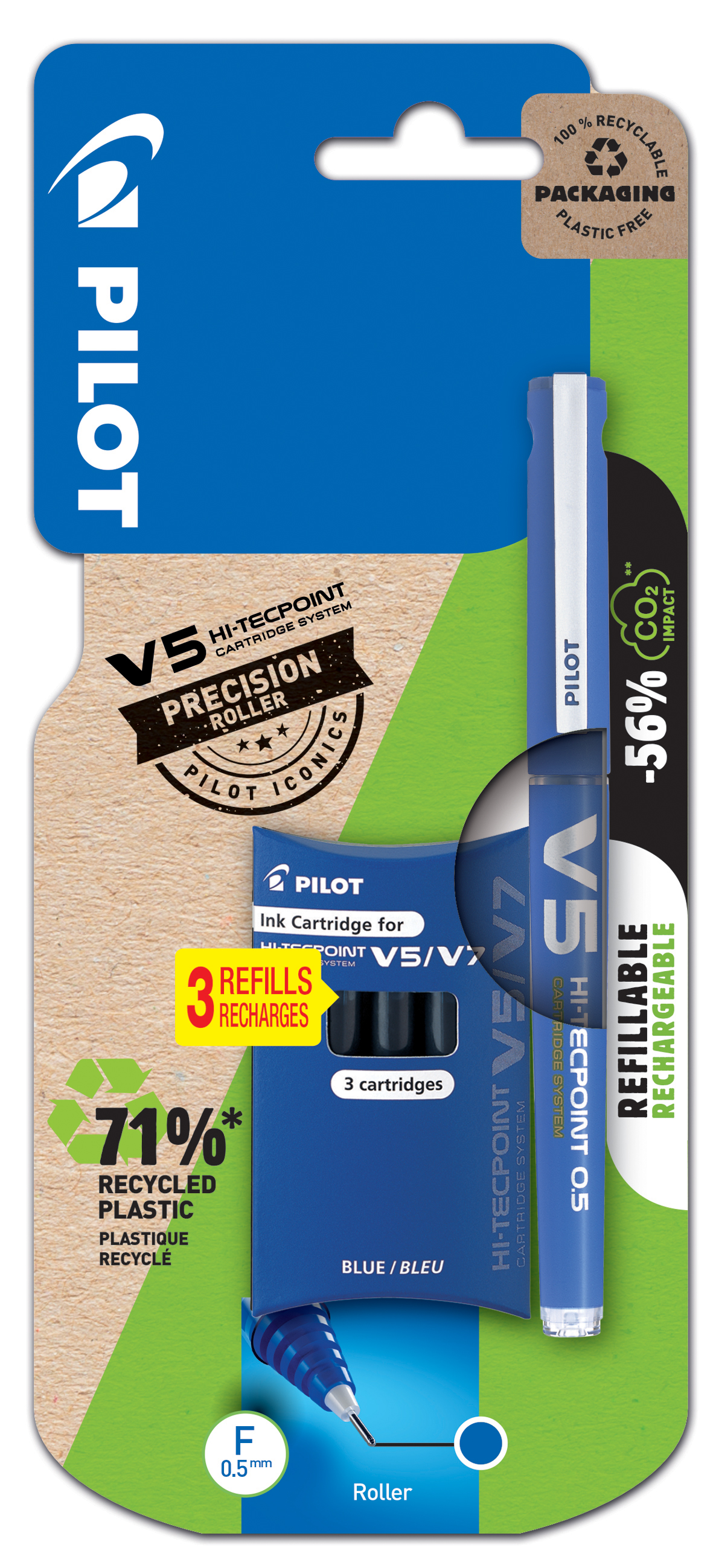 Cienkopis V5 na naboje niebieski + wkłady PILOT