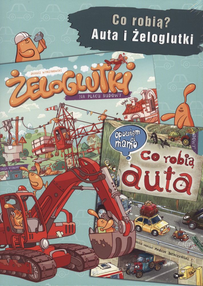 Dwie fantastyczne książki dla najmłodszych: „Opowiem ci, mamo, co robią auta” Artura Nowickiego i Marcina Brykczyńskiego oraz „Żeloglutki na placu budowy” Janusza Wyrzykowskiego. Zestaw w eleganckim pudełku, idealny na prezent!