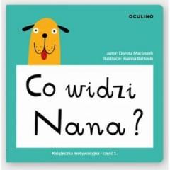 Co widzi Nana? to pierwsza część serii książeczek motywacyjnych. Wspomoże w akceptacji korekcji i rehabilitacji wzroku, a bohater bliski dziecku z problemami ocznymi umili mu codzienną niełatwą terapię.Co widzi Nana? Jakie to ma kolory? Jakie ma kształty? Potrafisz je policzyć? Czy są takie same, czy się różnią? Gdzie Nana ma oko? Gdzie są jej okulary?Zobacz! Nana ćwiczy oczka tak jak Ty!