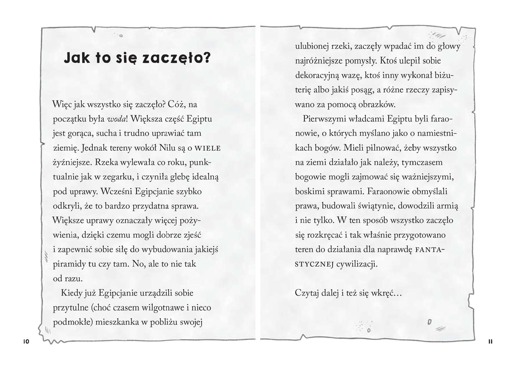 CO WOLISZ? Przygotowywać ciało do zrobienia z niego mumii – przemywać nieboszczyka winem, wyciągać z niego serce i zawijać go w kilometry bandaży? Przydadzą się mocne ręce i jeszcze bardziej wytrzymały żołądek… A może wolisz wykuwać w kamieniu hieroglify? Dobrze się zastanów, zanim wybierzesz! W tej książce to TY decydujesz, kim chcesz zostać. A przy okazji odkryjesz mroczne tajemnice piramid. Sprawdzisz, dlaczego Egipcjanie jedli strusie i po co Tutenchamonowi było 130 lasek do chodzenia. Dowiesz się, czym jest klątwa faraona i czy ona naprawdę istnieje. Uwaga, będzie szalenie zabawnie i… trochę strasznie!