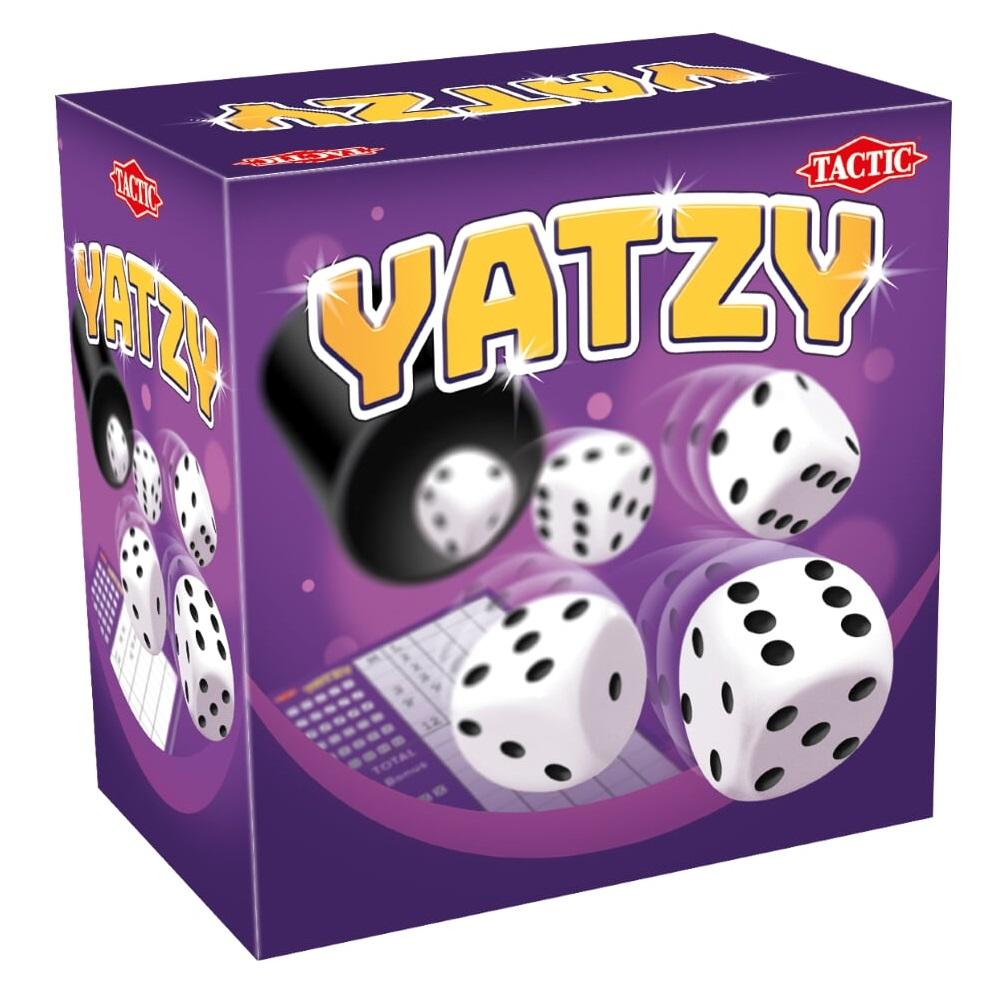 RZUCAJ KOŚĆMI I ... LICZ NA SZCZĘŚCIE. Szczęściu można jednak pomóc odrobiną taktyki. Zasady są proste. Każdy gracz rzucając pięcioma kośćmi stara się otrzymać specyficzne ułożenie oczek. Im więcej kombinacji uda mu się uzyskać tym więcej punktów zdobędzie! Yatzy jest grą, która zapewni wiele dobrej zabawy dla całej rodziny. Zawartość: 5 kości, notes, kubek, instrukcja.
