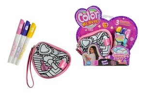 Różowa, błyszcząca portmonetka do pokolorowania, z 3 permanentnymi markerami, 6 lat+