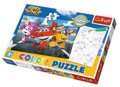 Dwustronne puzzle do kolorowania z bohaterami serialu animowanego "Super Wings". Dzięki puzzlom i kolorowance dzieci będą mogły rozwinąć swoją kreatywność i spostrzegawczość. Po ułożeniu powstanie obrazek o wymiarach 41x27,5 cm.