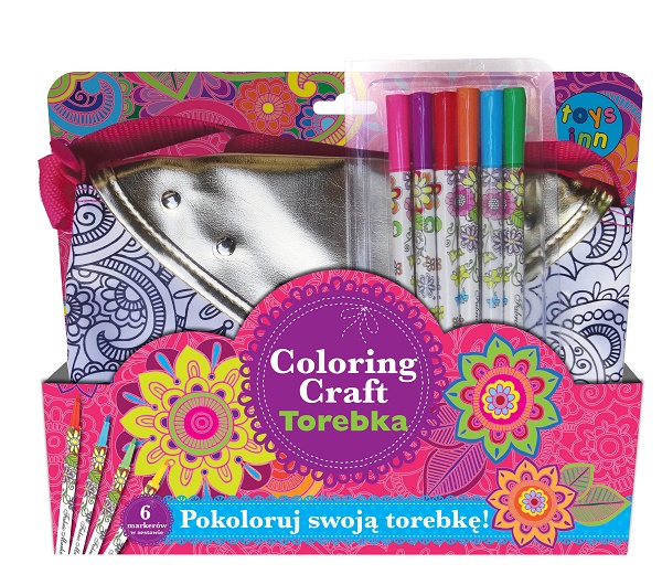 Zestaw zawiera: torebkę z metaliczną klapką o wymiarach. 25x15 cm, 6 dekoracyjnych markerów.