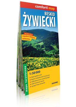 Dwustronnie laminowana, łatwa w składaniu i trwała mapa turystyczna Beskidu Żywieckiego w skali 1:50 000. Swoim zasięgiem obejmuje tereny od Bielska-Białej na północy po Wielką Raczę i Wielką Rycerzową na Południu, od Szczyrku i Zwardonia na zachodzie po Suchą beskidzką i Maków Podchalański na wschodzie. W obrębie mapy, oprócz Beskidu Żywieckiego, znalazł się również znaczny fragment Beskidu Małego.Mapa posiada bogatą treść turystyczną - m. in. ścieżki dydaktyczne, szlaki rowerowe i piesze wraz z podanymi czasami przejść, szczegółowo rozróżnioną bazę noclegową - hotele, domy wczasowe i pensjonaty, schroniska górskie i młodzieżowe, kempingi oraz pola namiotowe. Zaznaczono wyciągi narciarskie oraz narciarskie trasy zjazdowe. Dzięki cieniowaniu uzyskano plastyczny obraz rzeźby terenu.