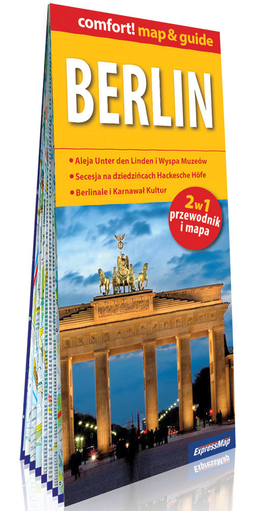 - mapa w skali użytecznej dla turystów (plan centralnych dzielnic miasta 1:20 000, plan Spandau), - poręczny format, wygoda składania i trwałość, - zajmujące opisy 42 najciekawszych miejsc wartych odwiedzenia, - łatwa nawigacja: atrakcje z przewodnika ponumerowane i zaznaczone na mapie, - przydatne informacje praktyczne: dni i godziny otwarcia obiektów, ceny biletów, transport publiczny, - podpowiedzi, co zjeść i wypić oraz dokąd wybrać się na zakupy, - kalendarium najciekawszych imprez cyklicznych. Seria comfort! map&guide to wyjątkowe połączenie mapy i przewodnika, idealne na krótki wyjazd. Wygodne, praktyczne i treściwe: z opisami kilkudziesięciu najciekawszych miejsc, gotowymi trasami zwiedzania, bogatymi informacjami praktycznymi i świetną kartografią. Publikacje mają poręczny format, są łatwe w składaniu, a dzięki laminacji również wyjątkowo trwałe. x