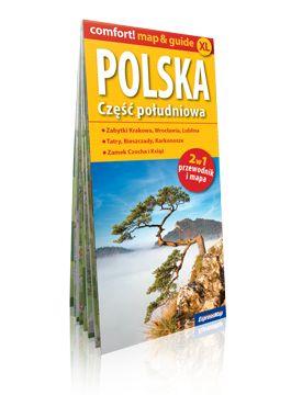 Zabytki Krakowa, Wrocławia, Lublina Tatry, Bieszczady, Karkonosze Zamek Czocha i Książ Średniowieczne stare miasto w Krakowie, Wrocławiu i Lublinie, zabytki techniki na Śląsku, wszystkie polskie pasma górskie, wytworne pałace i malowniczo położone zamki, drewniane cerkwie i kościoły. Na południu naszego kraju każdy znajdzie atrakcje dla siebie. Comfort! map&guide XL ,,Polska. Część południowa"" pomoże zaplanować udany wypoczynek. To wyjątkowe połączenie mapy i przewodnika zawiera wszystkie informacje niezbędne zarówno na krótki wyjazd, jak i dłuższe wakacje. Map&guide w nowej odsłonie - większy format i jeszcze więcej treści: zajmujące opisy kilkudziesięciu niezwykłych miejsc wartych odwiedzenia, mapa południowej części Polski 1:700 000 i plany najważniejszych miast w dogodnych dla turysty skalach, łatwa nawigacja: atrakcje z przewodnika ponumerowane i zaznaczone na mapie, kolorowe rysunki i fotografie najważniejszych obiektów turystycznych.