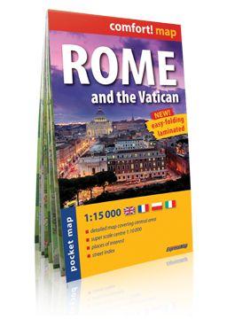 Dwustronnie laminowany, wygodny w składaniu kieszonkowy plan interesujących dla turysty, centralnych dzielnic miasta, szczegółowa skala 1:15 000 (1 cm - 150 m), bogata treść turystyczna, m.in.: zabytki, antyczne ruiny, muzea, hotele, schroniska młodzieżowe i inne istotne obiekty, linie i stacje metra, kolejki podmiejskiej oraz tramwajowe, cieniowanie plastycznie pokazujące urozmaicone ukształtowanie terenu Miasta Siedmiu Wzgórz, plan zabytkowego centrum Rzymu w szczegółowszej skali 1:10 000 (1 cm - 100 m), skorowidz ulic.