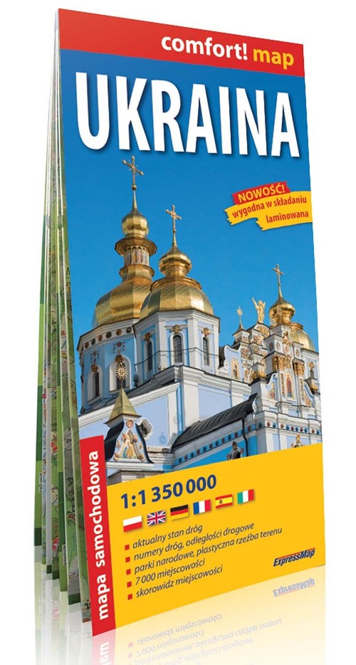 Dwustronnie laminowana, wygodna w składaniu mapa samochodowa Ukrainy? stan dróg 2012, odcinki w budowie? szczegółowa kategoryzacja i numeracja dróg? odległości drogowe w kilometrach? plastyczna rzeźba terenu, lasy, parki narodowe? skorowidz miejscowości