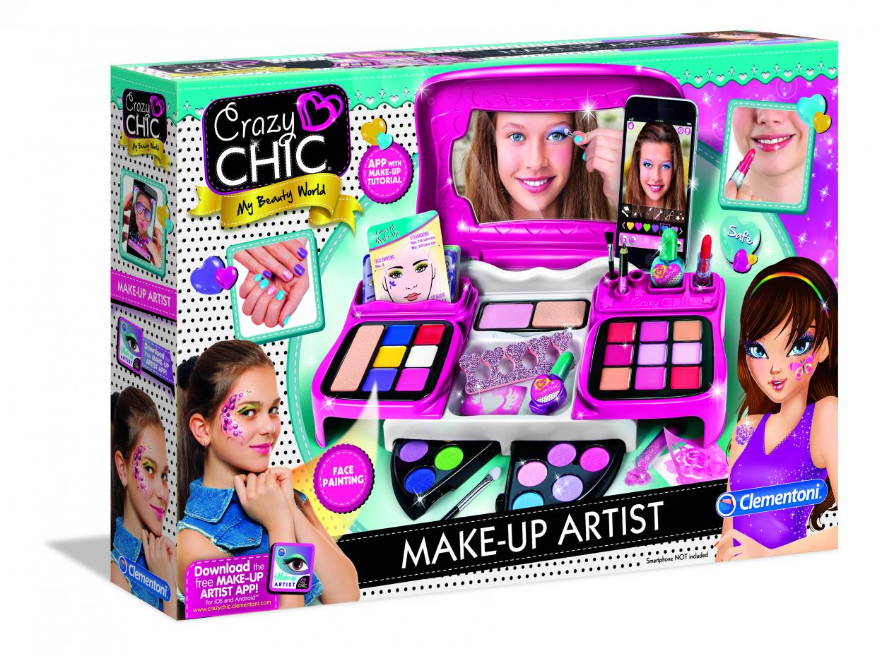 Torba zawiera błyszczyk, cień do powiek, szminkę, lakier do paznokci, aplikatory i wszystko, czego potrzebujesz, aby stać się prawdziwą Crazy Girl. Dzięki nowej aplikacji Crazy Chic zabawę można kontynuować na tablecie lub smartfonie. x