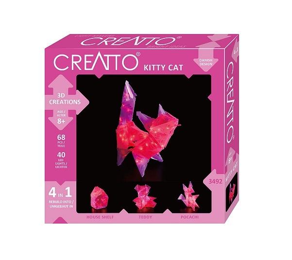 Opis produktuZasady bezpieczeństwaCREATTO to dobry sposób, żeby spędzić czas z dzieckiem, jednocześnie razem coś tworząc. Z wytrzymałych, plastikowych elementów tworzymy trójwymiarowe figurki, które są podświetlane od środka światełkami LED. Używając tego zestawu można stworzyć kotka, misia, domek lub wiewiórkę. x