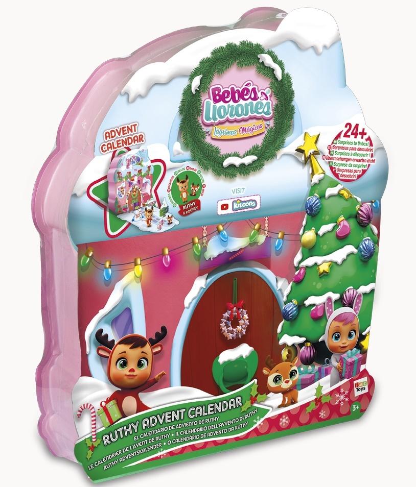 Kalendarz Adwentowy Cry Babies Magic Tears! Odkryj razem z Ruthie aż 24 niespodzianki na Święta Bożego Narodzenia, które nie spotkasz w żadnym innym zestawie! Kalendarz po otwarciu jest także trójwymiarową scenerią (część elementów można dogiąć dzięki zagięciom i wycięciom w tworzywie, takich jak choinka czy skrzynka pocztowa na listy). Stwórz nowe scenariusze zabawy w zimowym i świątecznym otoczeniu z laleczką Ruth, która płacze prawdziwymi łzami!