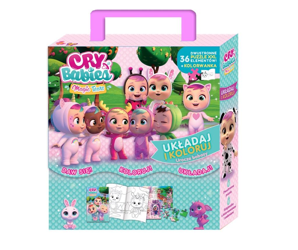 Opis produktuZasady bezpieczeństwaOto pudełko pełne zabawy z Cry Babies! Wewnątrz znajdziesz książeczkę z malowankami oraz dwustronne puzzle. Ułóż obrazek z bohaterami bajki Cry Babies, a potem odwróć układankę i pokoloruj scenkę według własnego pomysłu. x