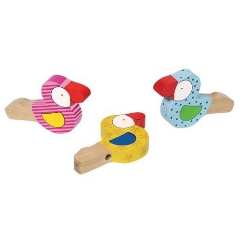 Ślicznie zdobiony drewniany gwizdek w kształcie ptaszka.