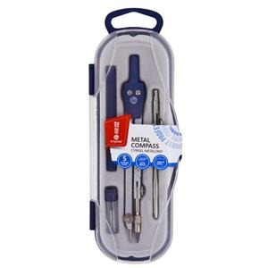 Zestaw 5-elementowy bazowany na metalowym cyrklu z regulacją kąta nachylenia grafitu. Solidny mechanizm regulacji promienia rysowanych okręgów zapobiega efektowi elipsy przy mocniejszym przyciśnięciu cyrkla do papieru. Łatwy w obsłudze system wymiany grafitów. Maksymalna średnica rysowanych okręgów 36c. Idealny do zastosowań szkolnych na lekcjach matematyki, techniki i plastyki. x